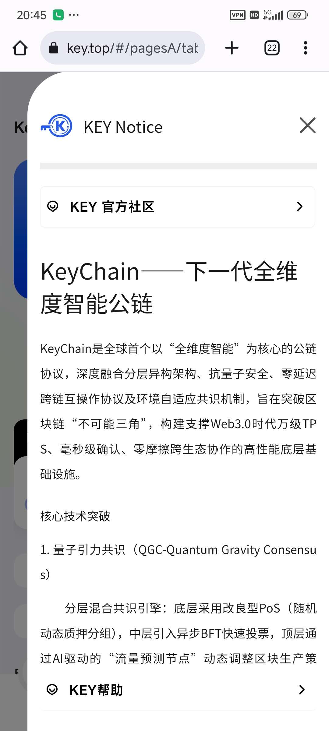 为每个人开启区块链和未来世界的钥匙,同时KEY公链为机构和开发人员打造适用于应用程序的无许可区块链,在不损害去中心化的核心原则的同时,让钱包、金融工具更容易获得。KEY链将构建一个自我进化、无限扩展、无缝连接现实与数字世界的区块链基础层,成为人类迈向可信数字化社会的核心引擎。通过将前沿学术成果(如量子安全、联邦学习)与工程极致化设计结合,KEY链重新定义公链的可能性边界。