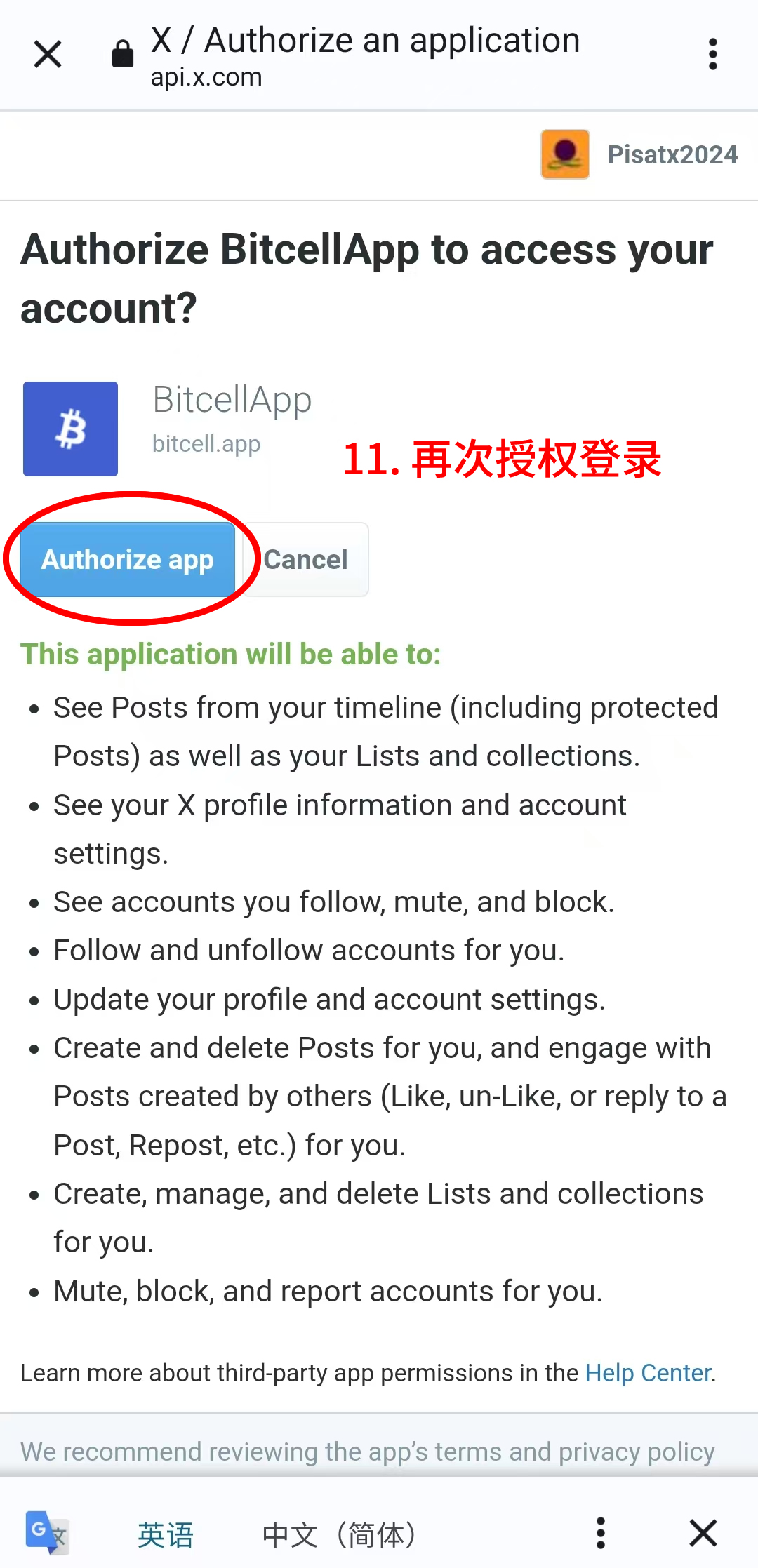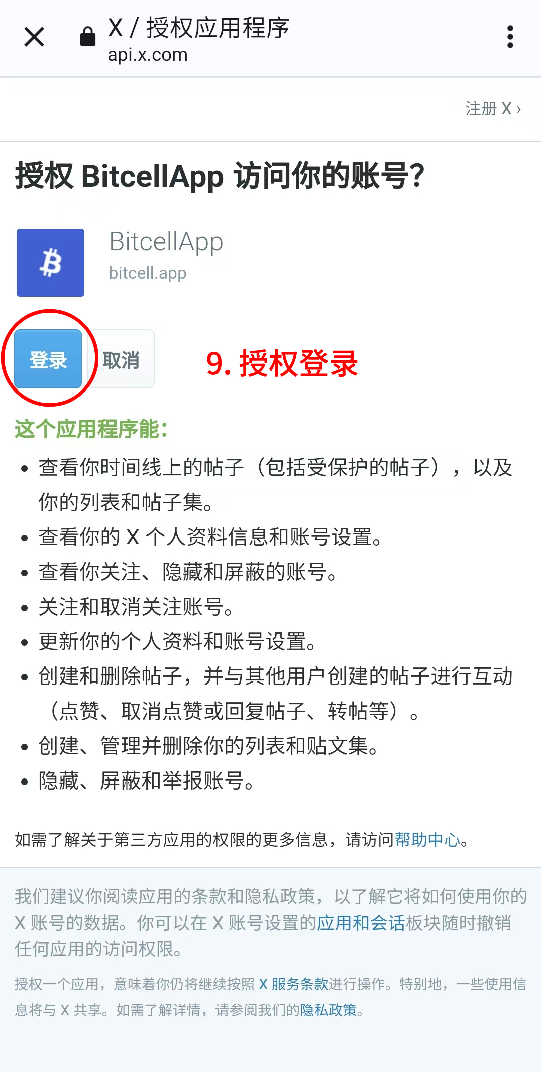 用户使用 XAuth (Twitter OAuth) 创建帐户。授权后,Bitcell 检索:
