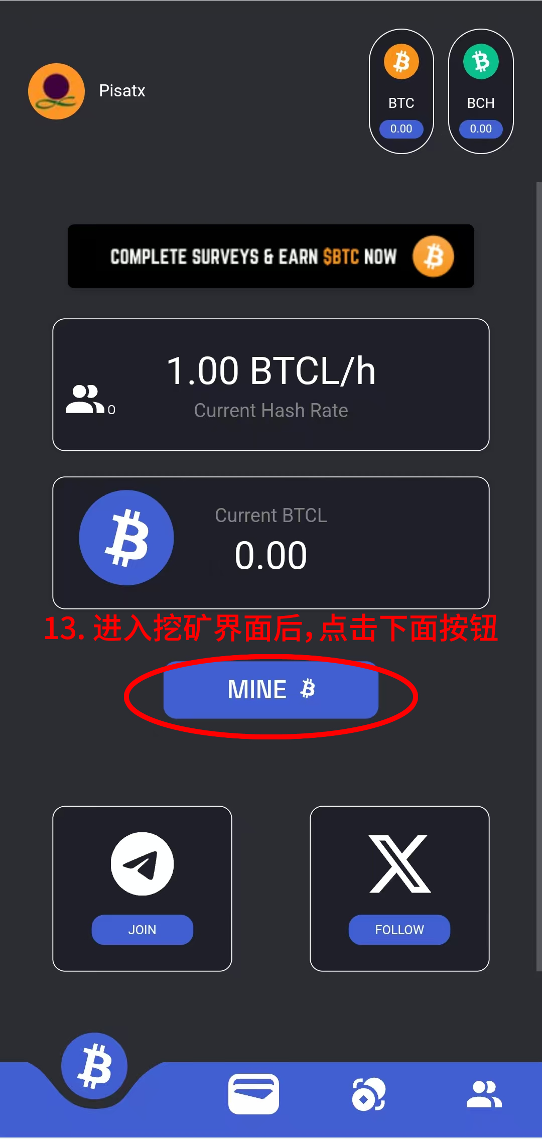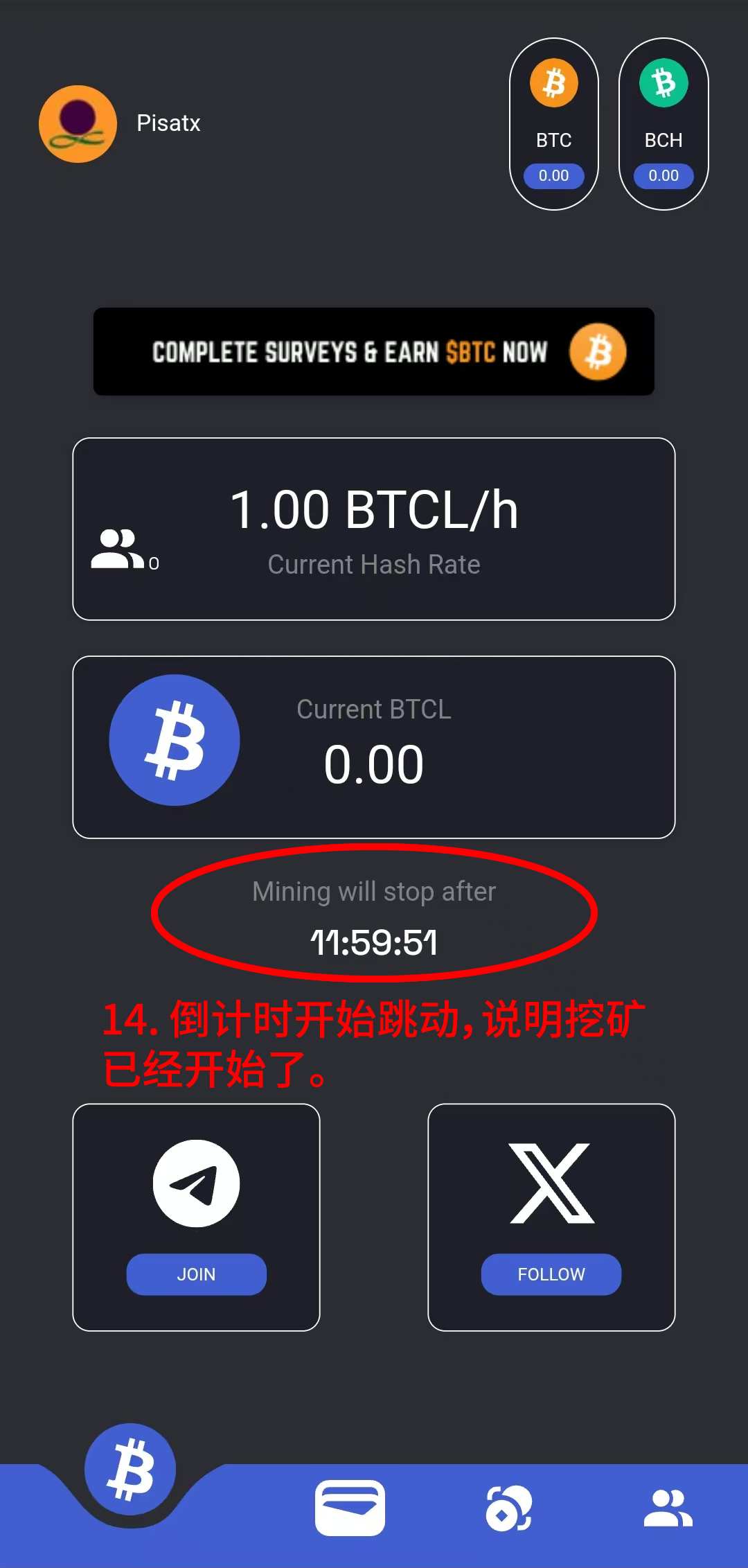 没有新用户能够挖掘$BTCL。只有在测试网期间参与挖矿并获得 21M 供应份额的用户才能持有$BTCL。