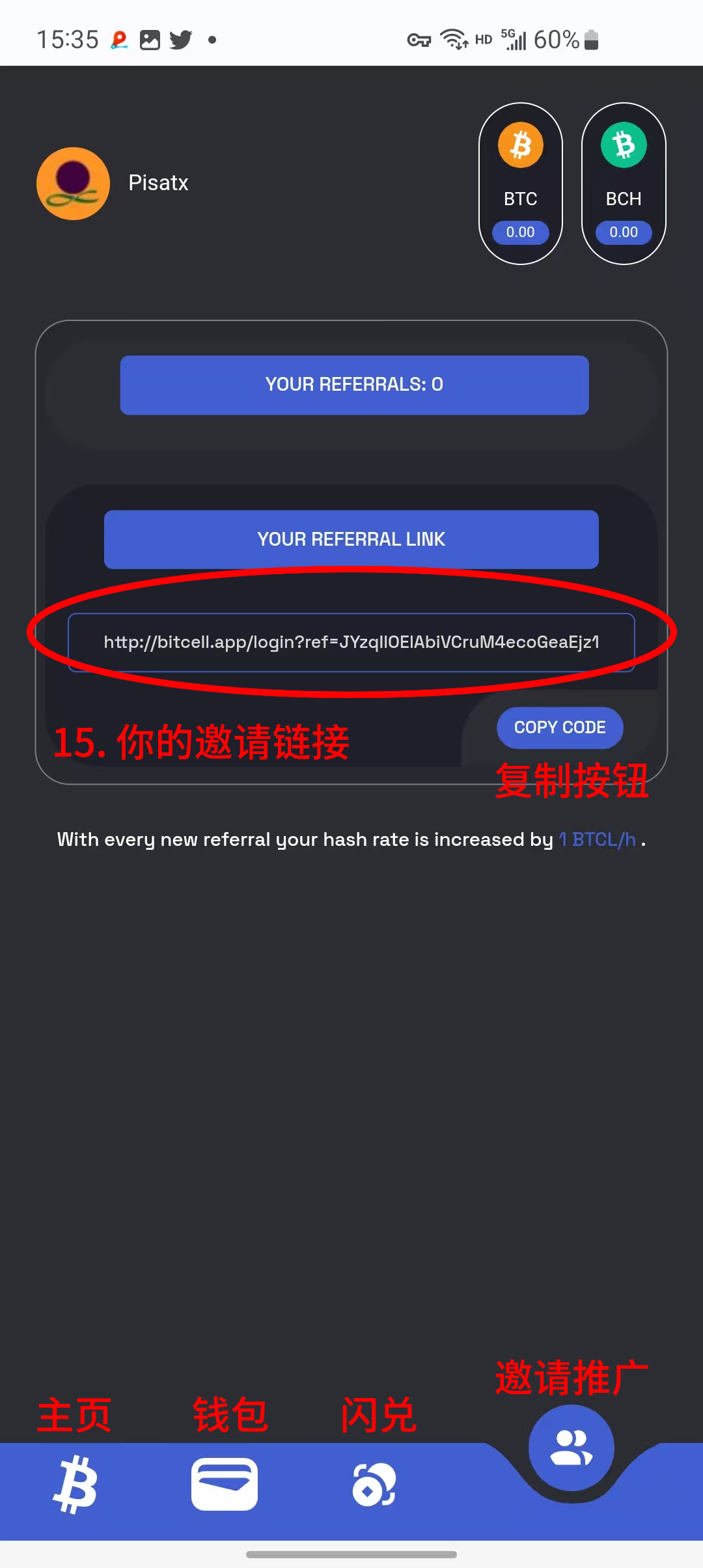 每次推荐都会使您的挖矿速度提高 +1 BTCL/h