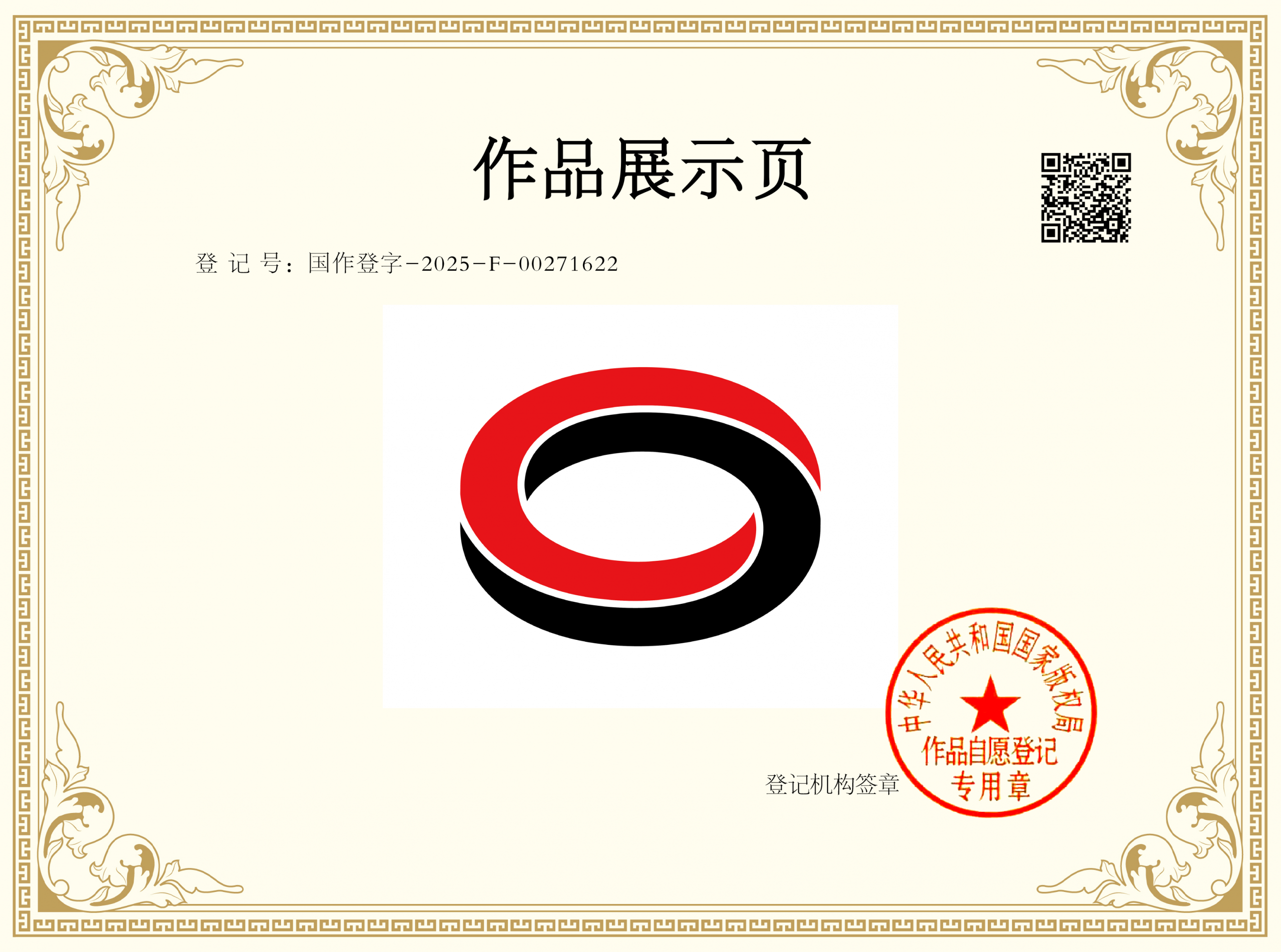 本美术作品,由两个完全相同的椭圆形上下叠加组合而成。上下两个椭圆形可以呈为同色,也可以呈为不同色,一般情况下以呈为不同色为宜。上下两个椭圆形交汇重叠处的颜色和背景颜色保持一致。