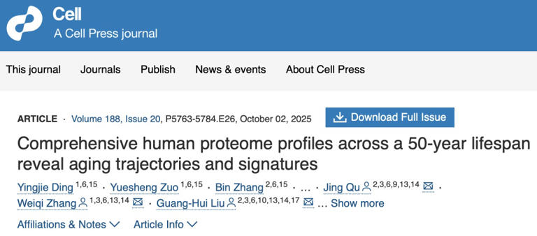2025年7月,我国科学家在《细胞》期刊上发表的一项研究显示,大多人会在50岁左右出现衰老转折点。
