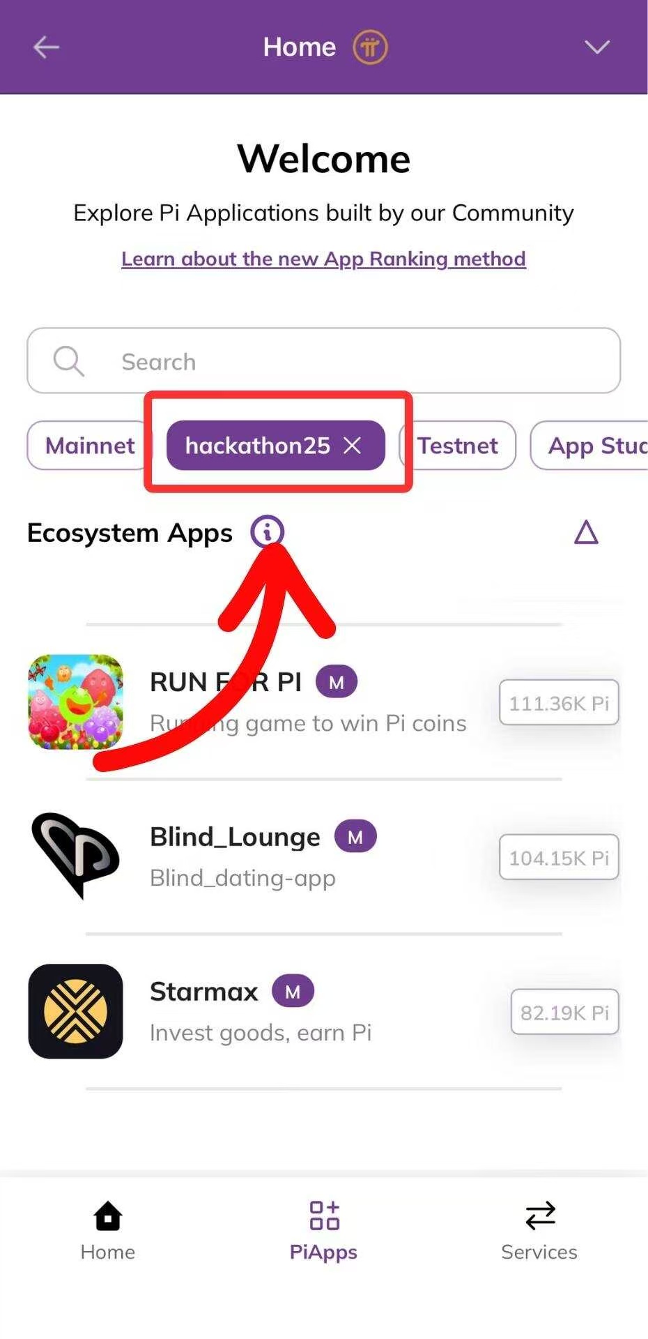 先驱者们可以在 Pi 浏览器生态系统界面的主网部分的 hackathon2025 选项卡下查看所有黑客马拉松提交作品。
