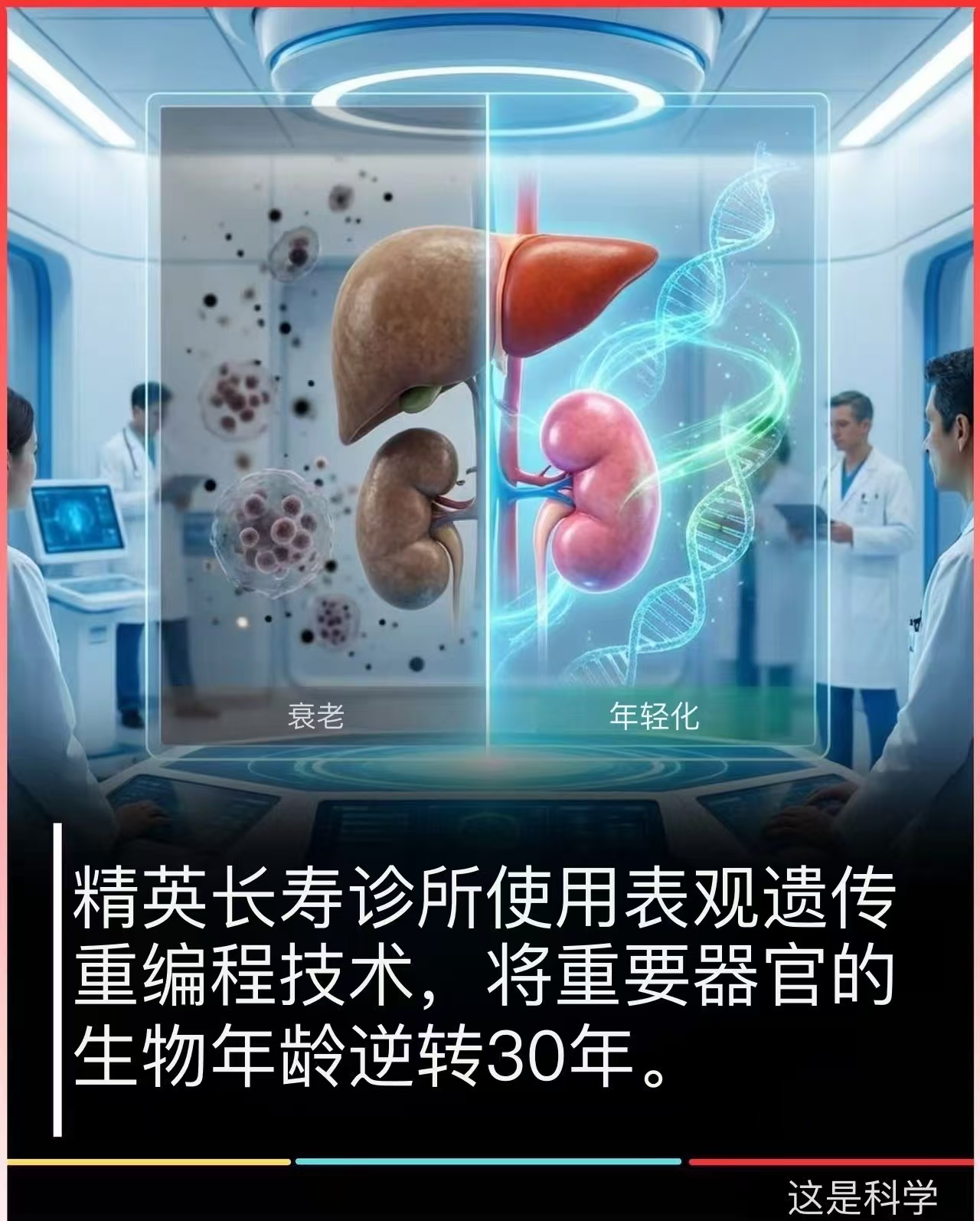 精英长寿诊所利用表观遗传重编程技术,使重要器官的生物年龄逆转30年。
