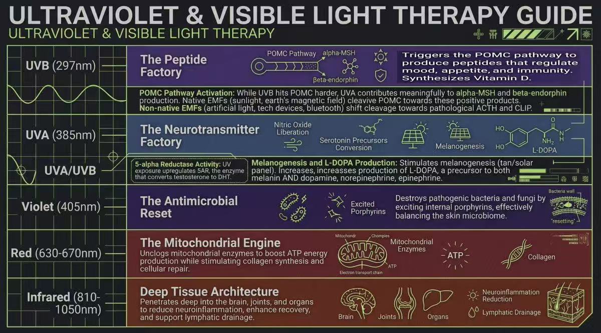 2. 上午11点到下午3点:UVB & UVA 全功率(肽工厂 + 神经递质开工)